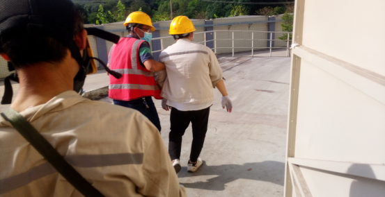 倉管員發(fā)現(xiàn)險情及現(xiàn)場處置人員中毒,將中毒人員扶至安全區(qū)域。