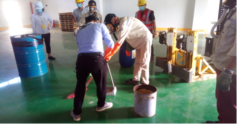 2、在應(yīng)急演練處置過程中,倉儲部作為應(yīng)急救援的主力軍,處置動作迅速、到位,對防毒面具的穿戴掌握熟練。