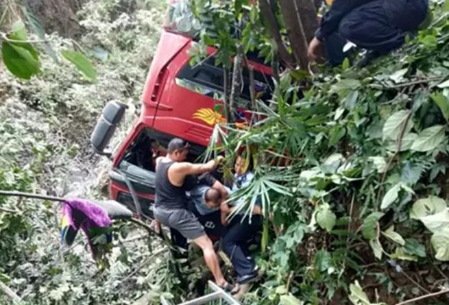 驚險!云南一罐車翻下30米深谷,情況緊急