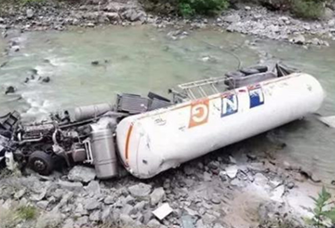 突發(fā)!四川一滿載20噸LNG罐車側翻,罐體泄露情況危急