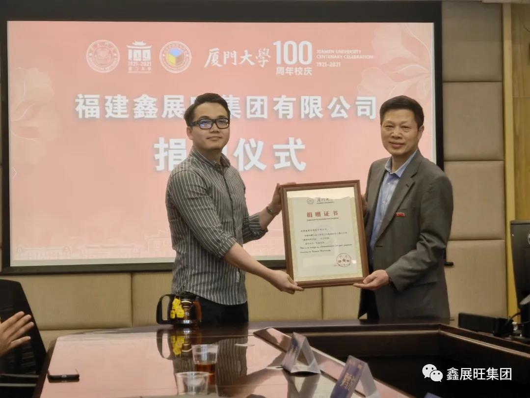 值此廈門大學(xué)百年慶典到來(lái)之際,廈門大學(xué)特邀鑫展旺集團(tuán)董事長(zhǎng)謝平展先生參加廈門大學(xué)舉辦的“建校100周年慶;顒(dòng)”暨“獎(jiǎng)學(xué)金捐贈(zèng)儀式”。