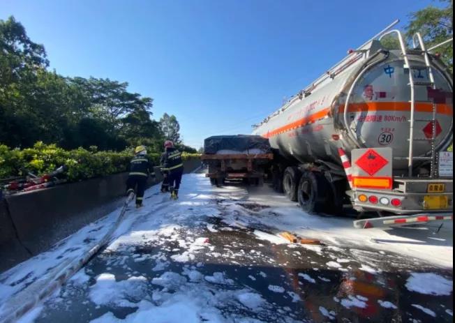 廣州市消防救援支隊(duì)12月7日通報(bào),12月6日12時(shí),廣州市119指揮中心接到警情稱沈海高速北二環(huán)機(jī)場(chǎng)高速水瀝出口路段發(fā)生一起交通事故,一輛油罐車與一輛貨車相撞,現(xiàn)場(chǎng)有大量汽油泄漏,情況緊急。消防部門接到報(bào)警后迅速趕赴現(xiàn)場(chǎng)處置。 經(jīng)了解,涉事油罐車罐體由5個(gè)獨(dú)立油罐組成,其中前四個(gè)罐儲(chǔ)油26噸、尾罐5噸。 泄漏點(diǎn)在尾罐邊緣,在與貨車碰撞后撕開一條長約20厘米、寬5厘米的不規(guī)則泄漏口。地面有大片油漬,并不斷流向路邊排水溝,空氣中彌漫著汽油味。 經(jīng)查明,現(xiàn)場(chǎng)已泄漏汽油3噸左右,如果不及時(shí)處置,后果將不堪設(shè)想。 了解情況后,現(xiàn)場(chǎng)消防指揮員隨即安排隊(duì)員成立了滅火冷卻組、搶險(xiǎn)組、疏散警戒組等作戰(zhàn)單元,協(xié)同民警對(duì)現(xiàn)場(chǎng)進(jìn)行警戒,禁止無關(guān)人員和車輛駛?cè)。滅火組做好防靜電措施后,在泄漏點(diǎn)架設(shè)水炮進(jìn)行泡沫覆蓋冷卻罐體,并稀釋現(xiàn)場(chǎng)泄漏的汽油, 多部門通力合作5個(gè)多小時(shí),終于將油罐車體泄漏口成功堵漏,并轉(zhuǎn)移罐體,完成現(xiàn)場(chǎng)污水回收。因處置科學(xué)及時(shí),事故未造成人員傷亡,事故原因還在調(diào)查中。