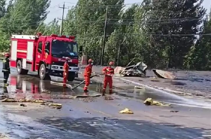 5月13日,山東泰安市泰山區(qū)化馬灣鄉(xiāng)南洪河村一村民向記者報料,一輛載有化學(xué)品的罐車在該村發(fā)生爆炸泄漏,不明化學(xué)品污染了村里的土地和河道。 事發(fā)時間為5月10日,南洪河村一輛大罐車突發(fā)爆炸,造成罐內(nèi)的液體向外泄漏,不斷散發(fā)出刺鼻的味道,車后大片區(qū)域被液體浸染,多名消防員手持水管正在對路面進行清洗。視頻顯示,耕地中的土壤也被液體浸染,農(nóng)作物枝葉上可見明顯黑色顆粒。 南洪河村村民屈先生(化姓)告訴記者,大貨車開始是氣體泄漏,后來整個罐體破裂,不明液體大量泄漏,污染了村中的河道和耕地。事發(fā)后,消防員到場對現(xiàn)場道路進行了清洗,生態(tài)環(huán)境局對空氣做了檢測,結(jié)果顯示空氣中含有致癌物質(zhì)。但被污染的耕地和水源怎么樣?至今無人給村民明確答復(fù)。 5月13日,記者致電化馬灣鄉(xiāng)人民政府,工作人員表示,事發(fā)當(dāng)天,泰安市和泰山區(qū)兩級應(yīng)急管理局和生態(tài)環(huán)境局等多部門都前往現(xiàn)場進行了處置,第一時間安排事發(fā)地附近的數(shù)十名村民去醫(yī)院進行了體檢,檢查結(jié)果是村民均無礙。此外,相關(guān)部門還把事發(fā)地的土壤、水源和氣體也都拿去進行了化驗,事發(fā)當(dāng)天的數(shù)據(jù)確實稍微有些異常,但第二天再去化驗時,所有的數(shù)據(jù)均已恢復(fù)正常,目前善后工作仍在進行。 上述工作人員還介紹,載有不明化學(xué)液體的車輛當(dāng)時停在路邊,駕駛員離開去吃飯了,先是車上罐內(nèi)氣體發(fā)生泄漏,強大的氣流將罐體撕開一道口子,導(dǎo)致罐內(nèi)液體泄漏。 泰山區(qū)生態(tài)環(huán)境局工作人員表示,他們事發(fā)當(dāng)天下午現(xiàn)場對空氣、土壤和水源進行了取樣檢測,最新的檢測結(jié)果顯示,空氣已恢復(fù)正常,土壤準(zhǔn)備按照有害物質(zhì)處理。