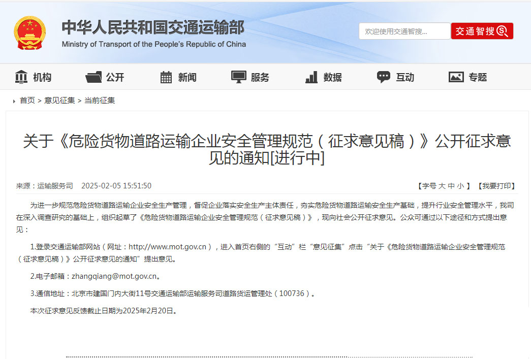 為進(jìn)一步規(guī)范危險貨物道路運(yùn)輸企業(yè)安全生產(chǎn)管理,督促企業(yè)落實(shí)安全生產(chǎn)主體責(zé)任,夯實(shí)危險貨物道路運(yùn)輸安全生產(chǎn)基礎(chǔ),提升行業(yè)安全管理水平,近日,交通運(yùn)輸部運(yùn)輸服務(wù)司在深入調(diào)查研究的基礎(chǔ)上,組織起草了《危險貨物道路運(yùn)輸企業(yè)安全管理規(guī)范(征求意見稿)》,現(xiàn)向社會公開征求意見。根據(jù)當(dāng)前危險貨物道路運(yùn)輸企業(yè)管理暴露出的一些問題和短板,交通運(yùn)輸部借鑒浙江省、江蘇省、廣東省等地經(jīng)驗(yàn),制定《危險貨物道路運(yùn)輸企業(yè)安全管理規(guī)范》,對于督促指導(dǎo)企業(yè)嚴(yán)格執(zhí)行有關(guān)法律法規(guī)和標(biāo)準(zhǔn)規(guī)范,落實(shí)安全生產(chǎn)主體責(zé)任,實(shí)現(xiàn)“管理有規(guī)范、作業(yè)有標(biāo)準(zhǔn)、操作有程序、過程有記錄、結(jié)果有考核”,防范化解重大風(fēng)險、遏制重特大事故發(fā)生具有重要意義。圍繞安全問題,新規(guī)在多方面進(jìn)行了明確的規(guī)定,如在貨物運(yùn)輸裝卸貨上,規(guī)定駕駛員和押運(yùn)人員不得違反規(guī)定擅自從事卸貨作業(yè)活動,杜絕因不當(dāng)造作引發(fā)安全問題。對于危貨電子運(yùn)單,新規(guī)也做出了明確規(guī)定,強(qiáng)調(diào)電子運(yùn)單的規(guī)范制作性,如駕駛員和押運(yùn)員信息必須與電子運(yùn)單保持一致,貨物信息填寫必須準(zhǔn)確,避免有軌跡無運(yùn)單等等。在監(jiān)管方面,規(guī)定危貨運(yùn)輸企業(yè)應(yīng)當(dāng)建立具有行駛記錄、衛(wèi)星定位功能的衛(wèi)星定位裝置(以下簡稱衛(wèi)星定位裝置)安裝、使用及維護(hù)制度。危貨車輛動態(tài)監(jiān)控?cái)?shù)據(jù)應(yīng)當(dāng)至少保存6個月,違法駕駛信息及處理情況應(yīng)當(dāng)至少保存36個月。